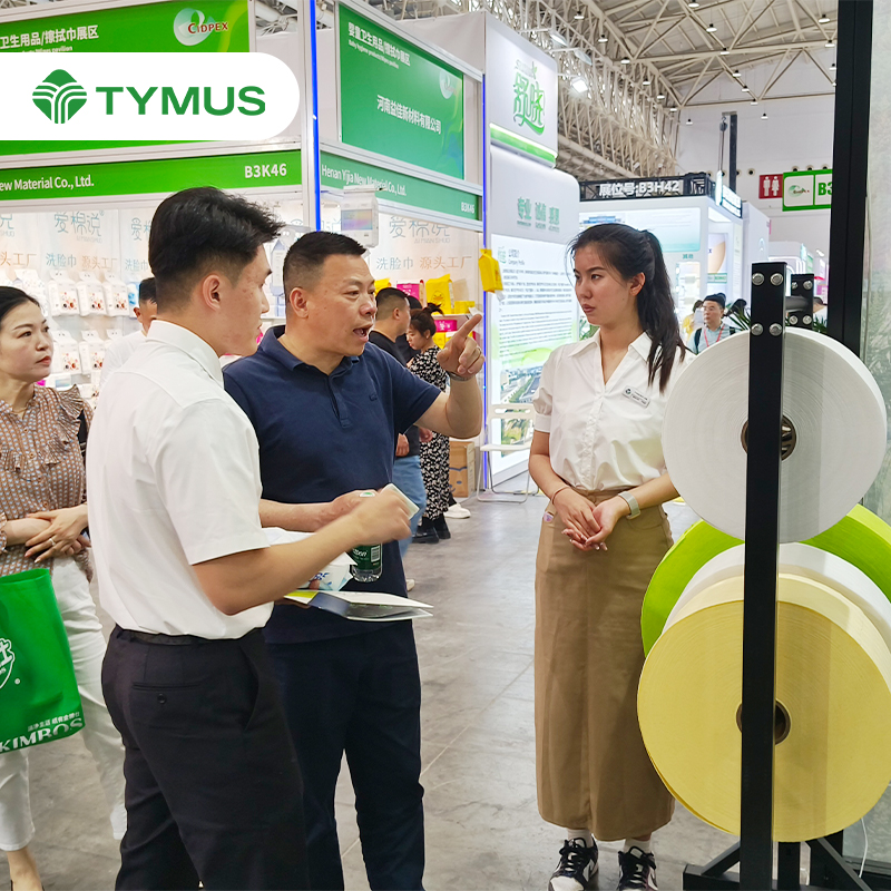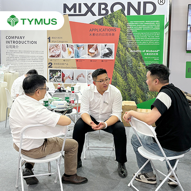 Στο περίπτερο, ο Tymus υπογραμμίζει την κατακόρυφη ικανότητα ενσωμάτωσης της "έρευνα και ανάπτυξη πρώτων υλών - παραγωγή βασικού υφάσματος - κατασκευής τελικού προϊόντος". Σύμφωνα με τους επιτόπιους τεχνικούς, τα 100.000 τετραγωνικά μέτρα της εταιρείας με ασηπτικά εργοστάσια εξοπλισμένα με τη δική της γραμμή παραγωγής έχει συνειδητοποιήσει την παραγωγή κλειστού βρόχου ολόκληρης της διαδικασίας από τις πρώτες ύλες του χαρτοπολτού ξύλου στα τελικά προϊόντα μαντηλάκια. Η τεχνολογία Mixbond® σε ειδική οθόνη υιοθετεί φυσικό χάλκινο πολτό και μικροϊνές Meltblown ως πρώτες ύλες του πυρήνα και μέσω της σύνθετης διαδικασίας SPUNBOND πολλαπλών ινών, το βασικό ύφασμα διατηρεί τη φυσική πινελιά ενώ έχει τόσο υψηλή απορρόφηση υγρού όσο και σκληρότητα. Οι επιτόπιες μετρήσεις δείχνουν ότι η διαμήκης υγρή αντοχή εφελκυσμού του βασικότου είναι περίπου 40% υψηλότερη από εκείνη των παραδοσιακών μη υφασμένων υφασμάτων.
